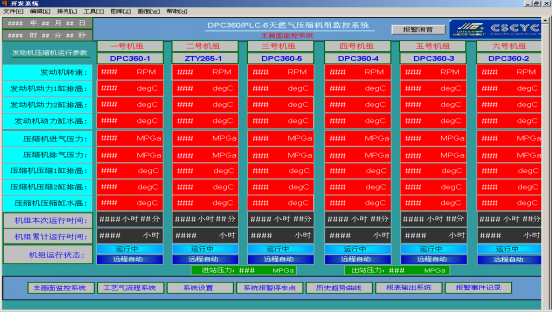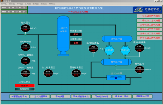 ◆ 能动态监视压缩机系统各工艺参数当前值及工艺过程的工作状态;